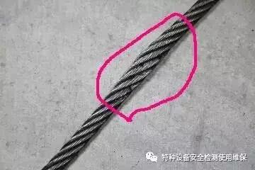 鋼絲繩的規(guī)格型號應符合塔機使用說明書的要求,潤滑良好,與金屬結(jié)構(gòu)無摩擦。鋼絲繩不得有扭結(jié)、壓扁、彎折、斷股、籠狀畸變斷芯等變形現(xiàn)象,也不得磨損嚴重。(直徑不得減小7%,斷絲數(shù)不得大于總根數(shù)的10%。)