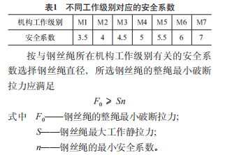 塔式起重機(jī)用鋼絲繩安全系數(shù)與其對(duì)應(yīng)機(jī)構(gòu)的工作級(jí)別見(jiàn)表1。