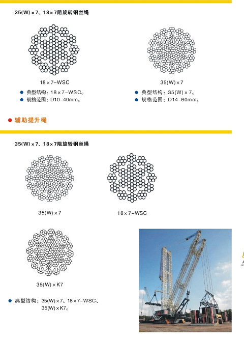 公司產(chǎn)品是油田、國內(nèi)大型港口、大型煤礦、振華港機(jī)、徐工、中聯(lián)重科和三一重工等鋼絲繩配套原裝產(chǎn)品。16噸-1600噸汽車吊、輪胎吊、履帶吊壓實(shí)和雙壓實(shí)不旋轉(zhuǎn)起升鋼絲繩,壓實(shí)和雙壓實(shí)填塑帶塑料減震鋼芯變幅鋼絲繩。